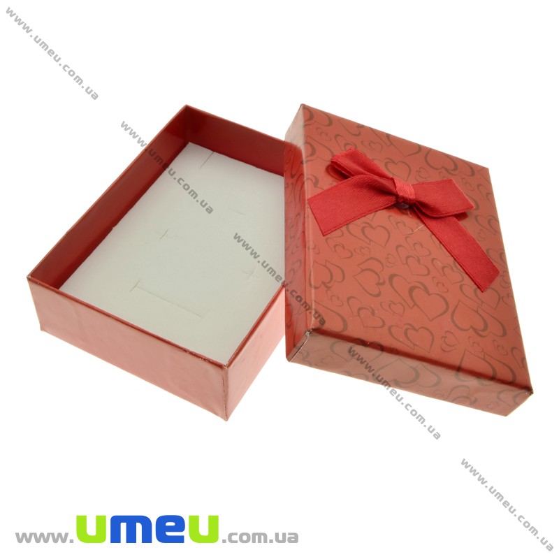 Подарочная коробочка Прямоугольная с сердечками, 8,5х6,5х3 см, Красная (UPK-023108) / 1 шт