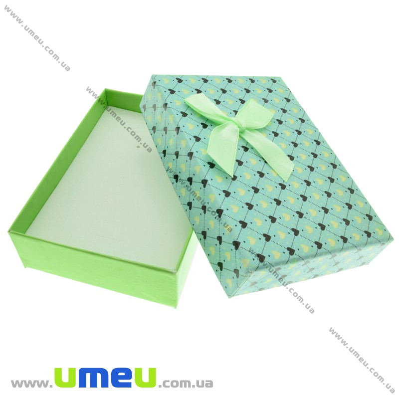 Подарочная коробочка Прямоугольная с сердечками, 11х8х3 см, Бирюзовая (UPK-023153) / 1 шт