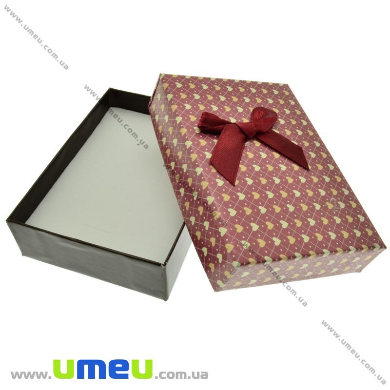 Подарочная коробочка Прямоугольная с сердечками, 11х8х3 см, Бордовая (UPK-023157) / 1 шт