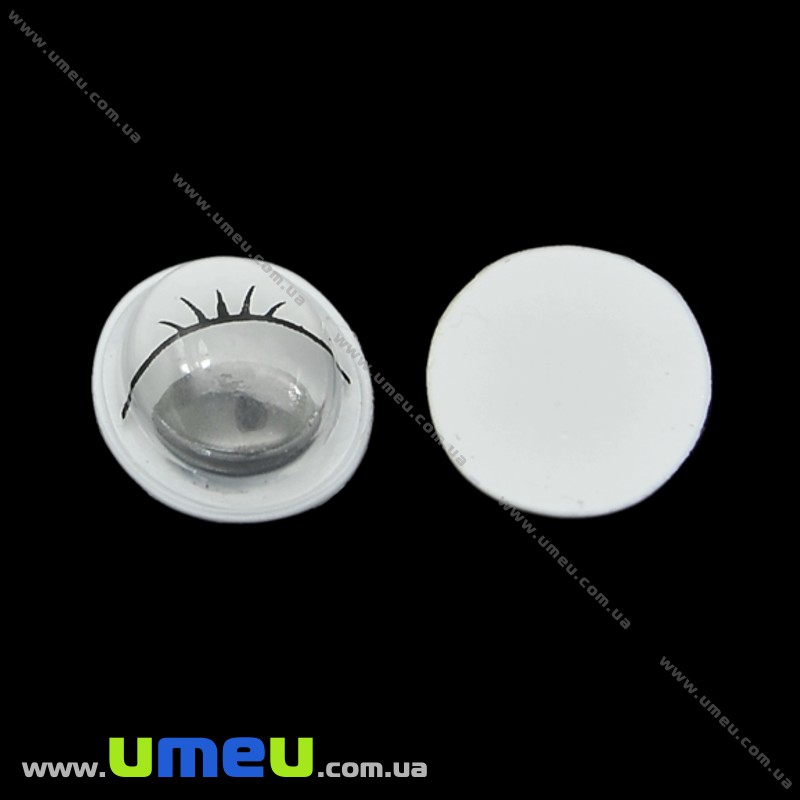 Глазки с ресничками клеевые овальные, 14х10 мм, Белые (DIF-023216) / 1 уп (2 шт)