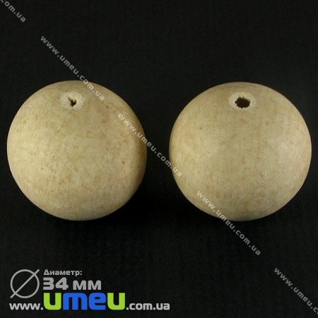 [Архив] Бусина деревянная без покрытия Круглая, 34 мм, Бук (BUS-002408) / 1 шт