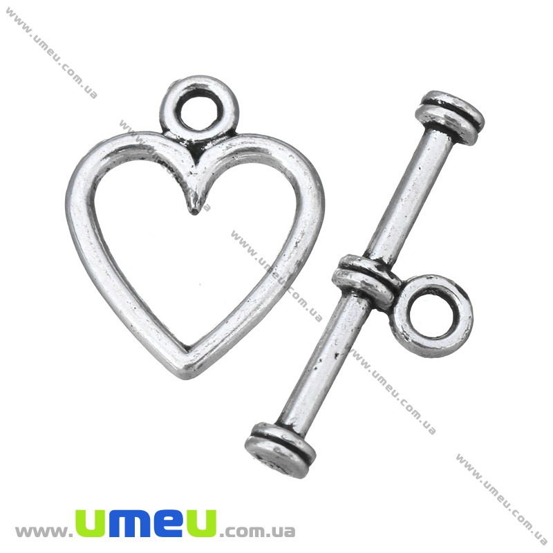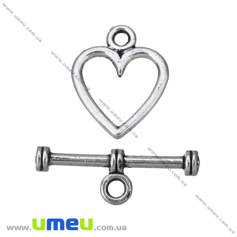Тогл Сердце, Античное серебро, 14х11 мм (ZAM-024229) / 1 шт
