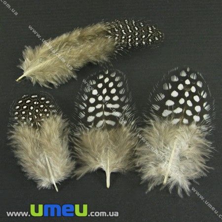 Перья Цесарки, Белые (Натуральные), 5-8 см (PER-002627) /