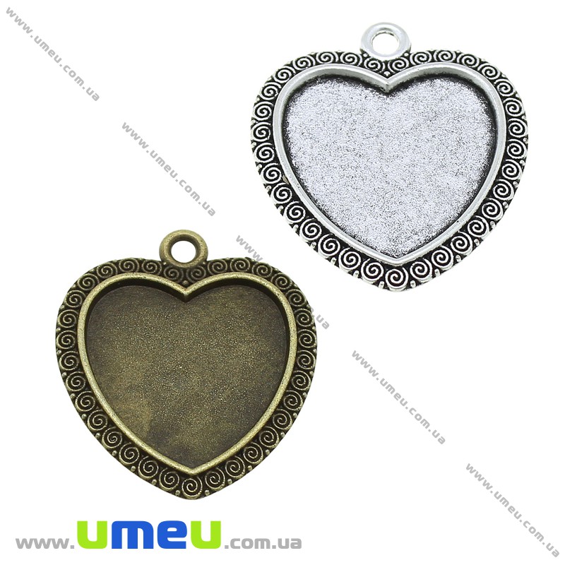 Основа Сердце, 37х33 мм, 25х25 мм, Античная бронза (OSN-028254) / 1 шт