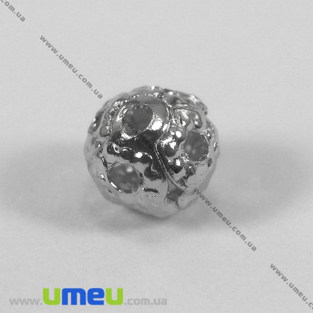 [Архив] Бусина мет. круглая Ажурная, 4 мм, Темное серебро (BUS-003244) / 1 уп (10 шт)