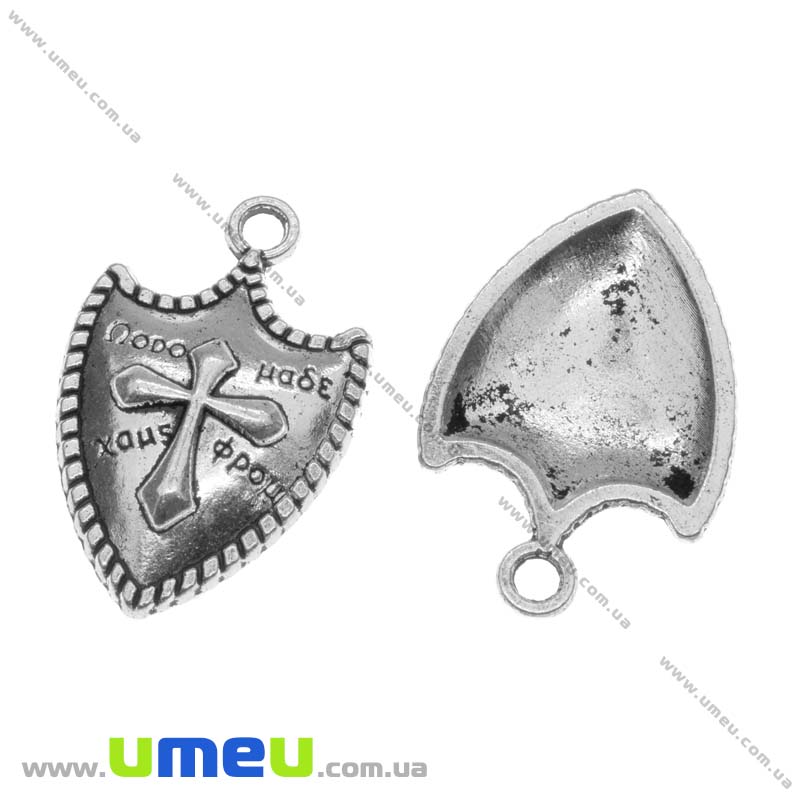 [Архив] Подвеска металлическая Щит с крестом, Античное серебро, 31х20 мм (POD-003339) / 1 шт