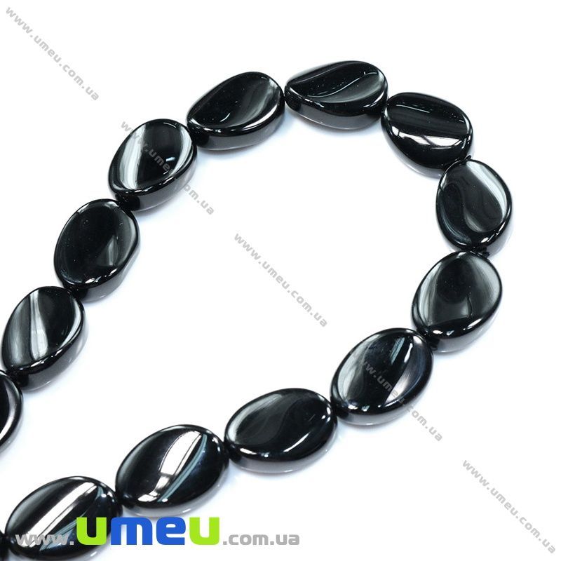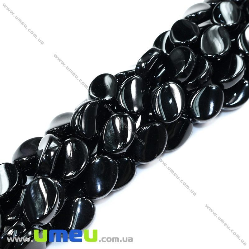[Архив] Бусина натуральный камень Агат черный, 16х12 мм, Овал скрученный (BUS-037087) / 1 шт