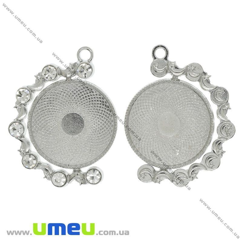 Основа круглая двухстор. вращающаяся со стразами, 43х33 мм, 25 мм, Темное серебро (OSN-037173) / 1 шт