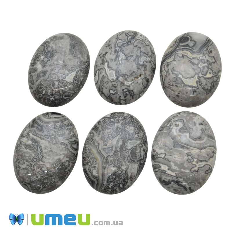 Кабошон нат. камень Яшма пейзажная серая, Овал, 40х30 мм (KAB-039228) / 1 шт