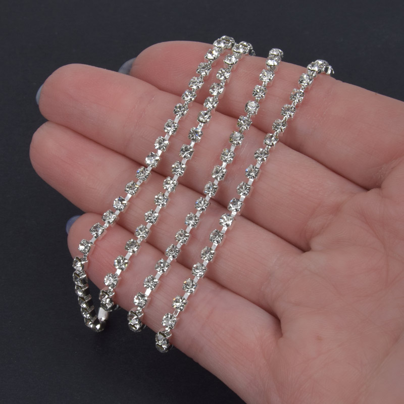 Стразовая цепь SS10 (2,6 мм), Светлое серебро, Стразы стеклянные белые (ZEP-039956) / 1 м