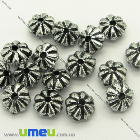 [Архив] Бусина пластиковая Античная, 6х4 мм, Античное серебро (BUS-004830) / 1 уп (10 шт)