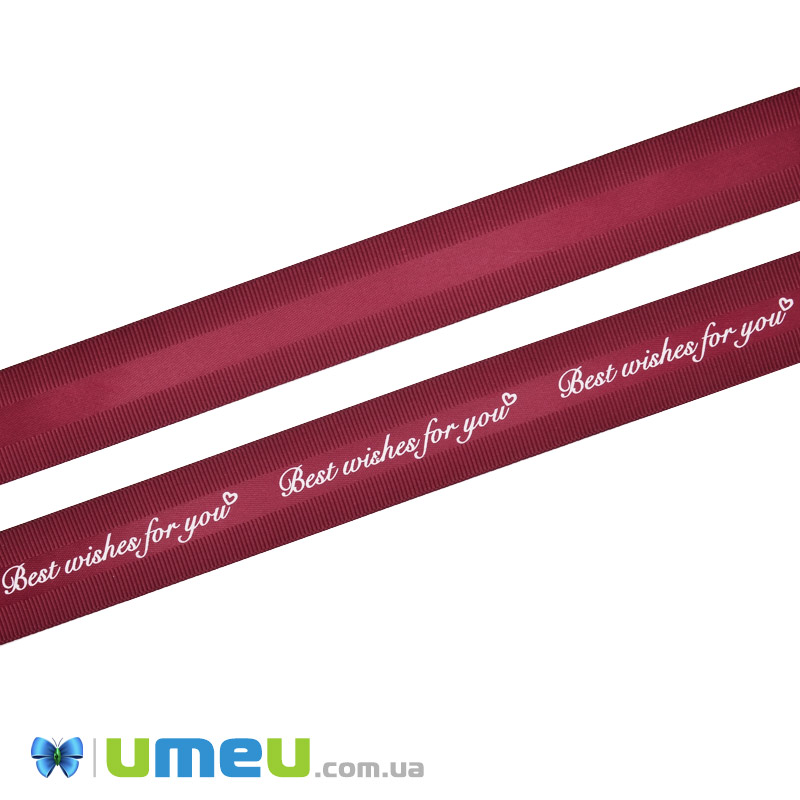 Репсовая лента Best wishes for you, 25 мм, Бордовая (LEN-048584) /