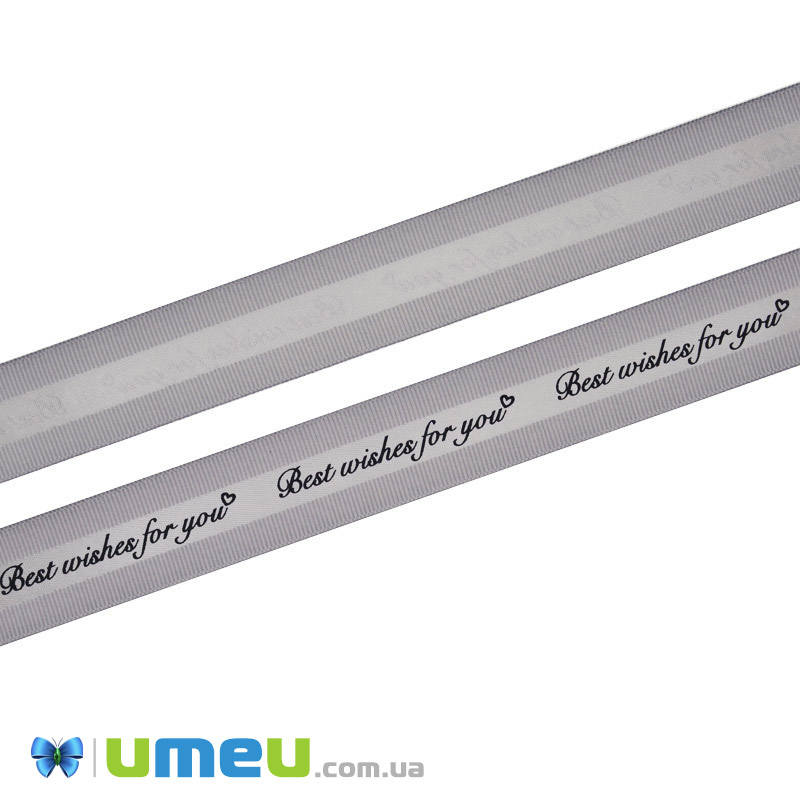 Репсовая лента Best wishes for you, 25 мм, Серая (LEN-048585) /
