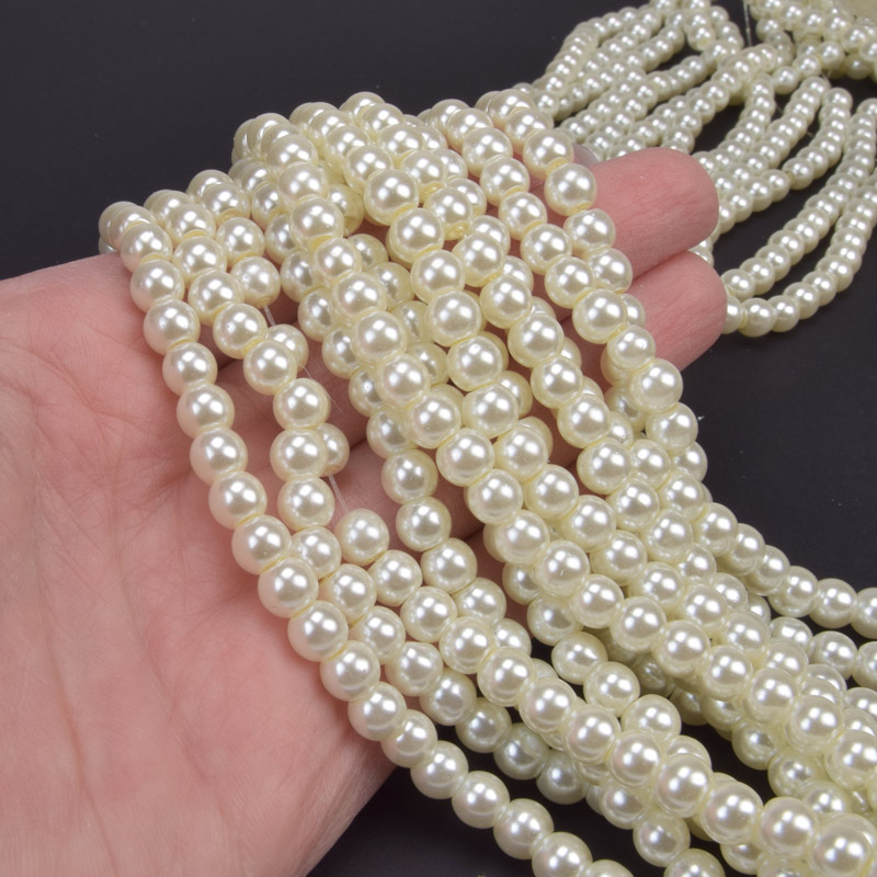 Бусины стеклянные Жемчуг, 6 мм, Кремовые, Круглые (BUS-048878) / 1 низка