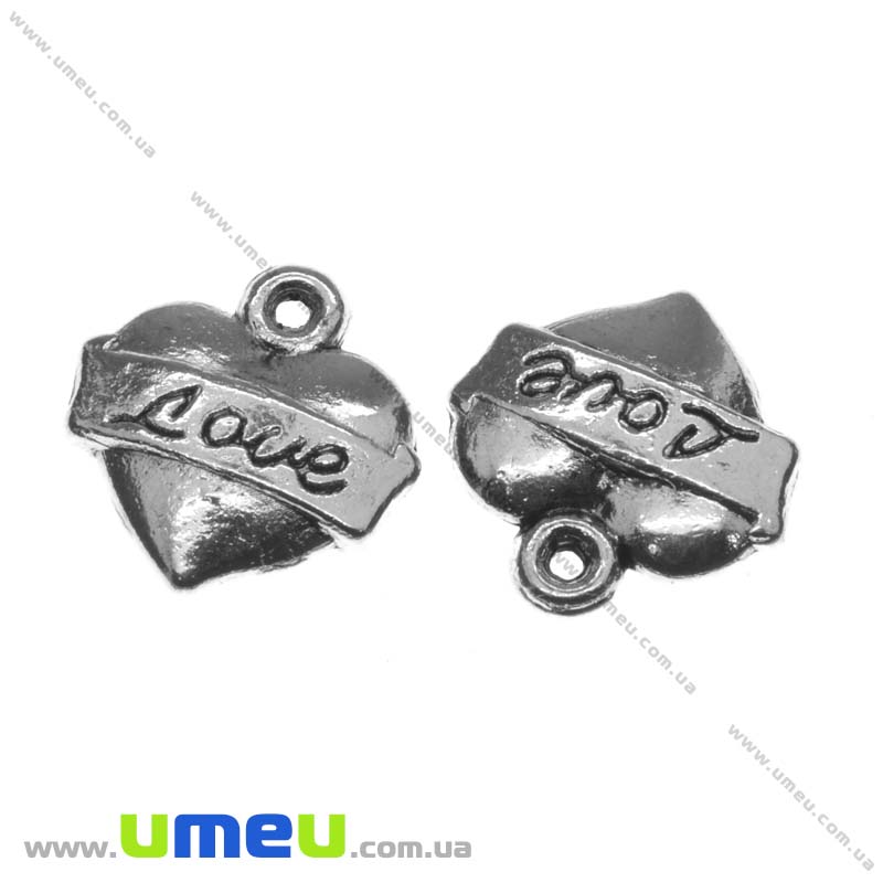 Подвеска метал. Сердце (двухстор.), 14х14 мм, Античное серебро (POD-004943) / 1 шт