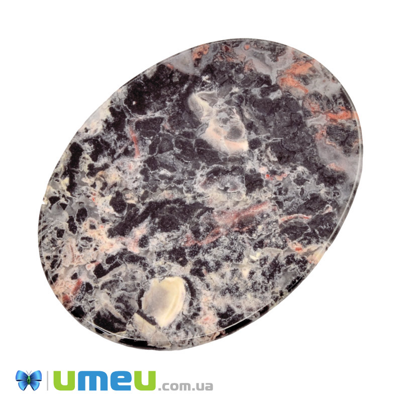 Кабошон нат. камень Яшма брекчиевая, Овал, 40,3х30,3 мм (KAB-050032) / 1 шт
