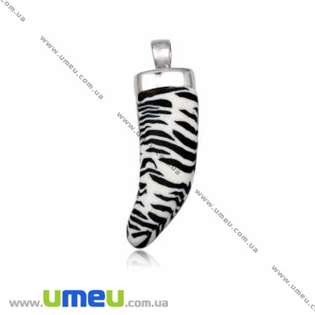 [Архив] Подвеска из ювелирной нержавеющей стали с полимерной глиной УЦЕНКА, Клык, 51х15 мм(POD-005004) / 1 шт