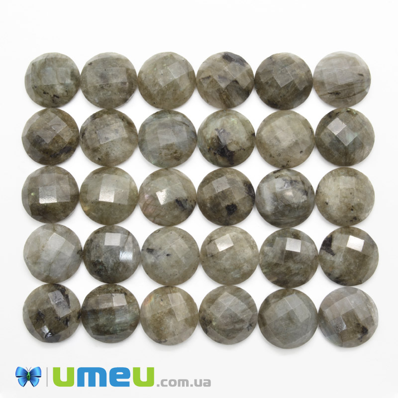 Кабошон нат. камень Лабрадорит, Круглый граненый, 14 мм (KAB-050565) / 1 шт