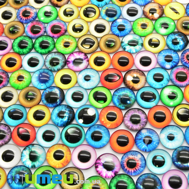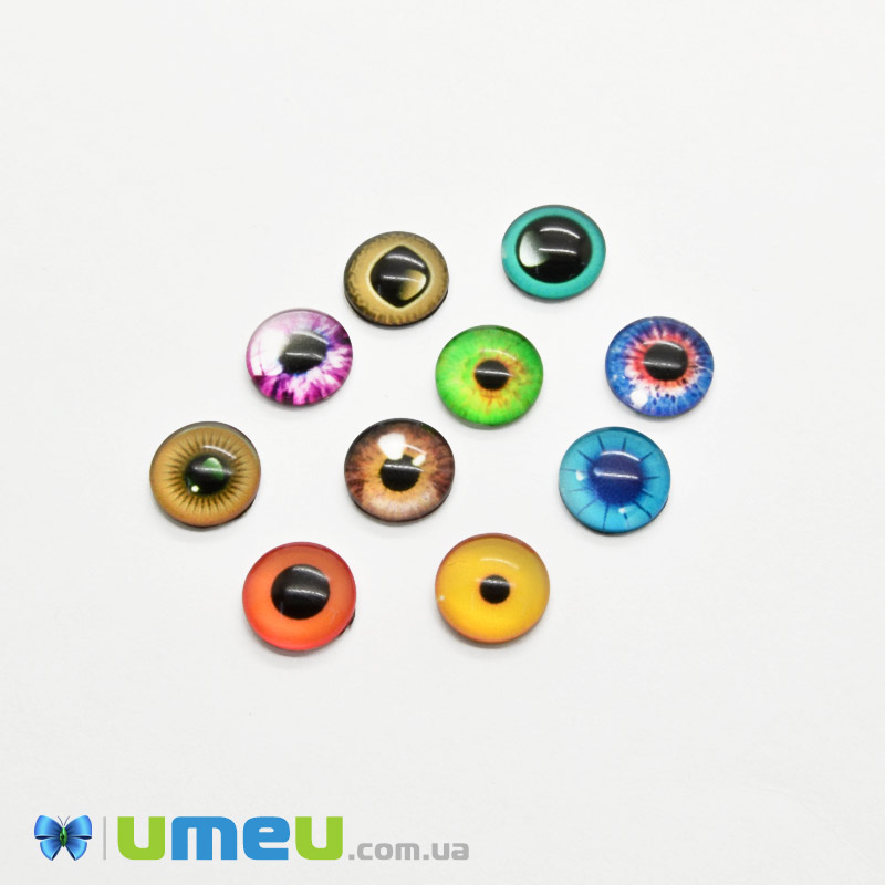 Кабошоны стеклянные с принтом Глаз, 10 мм, Круглые, Микс (KAB-050702) / 1 уп (10 шт)