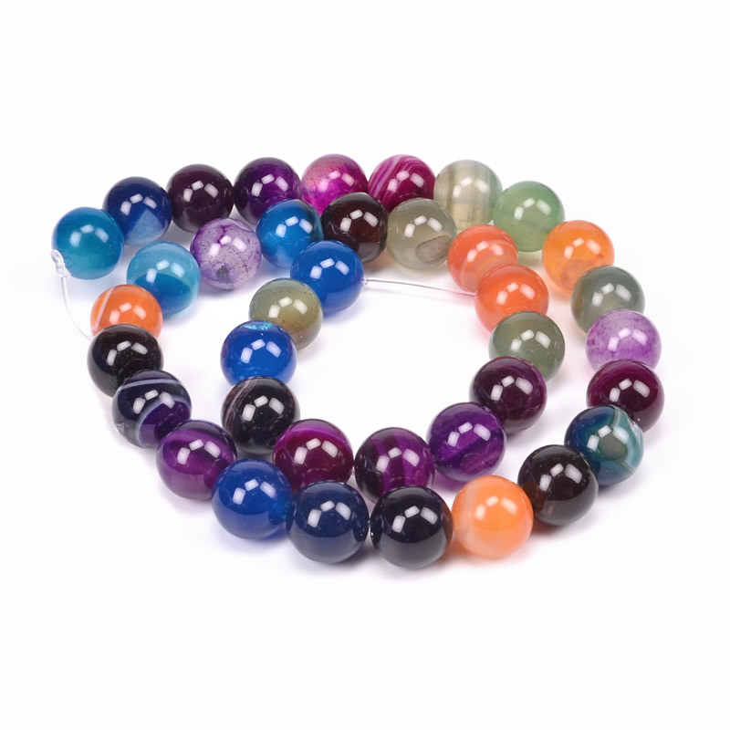 Бусины Агат разноцветный, Натур. камень, 10 мм, Круглые (BUS-051622) / 1 низка