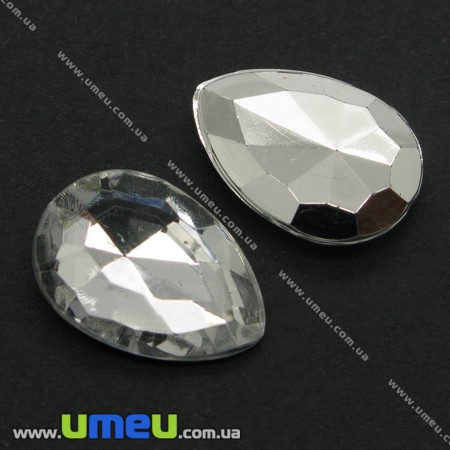 Риволи пластиковый, Капля граненая, 18х13 мм, Прозрачный (KAB-005230) / 1 шт