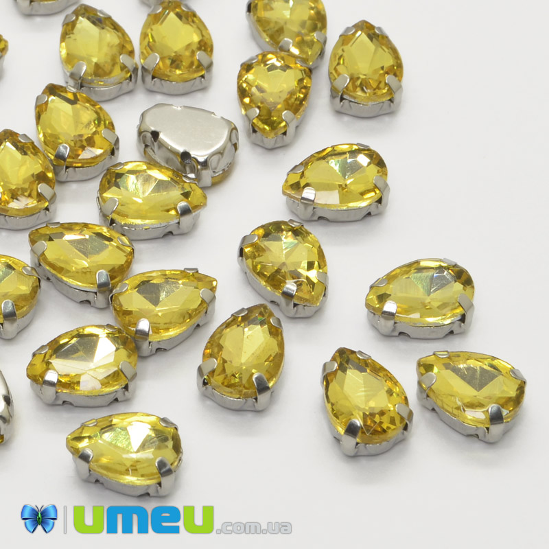 Шатон капля 14х10 мм, Темное серебро, Желтый (KAB-052600) / 1 шт