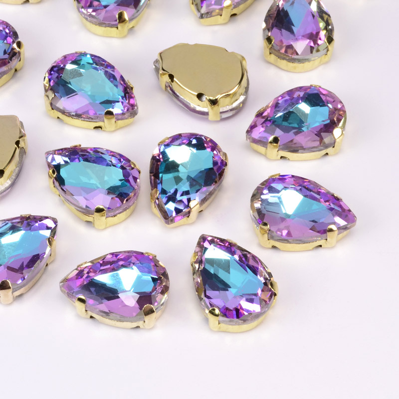 Шатон капля 14х10 мм, Золото, Сине-сиреневый (KAB-052924) / 1 шт