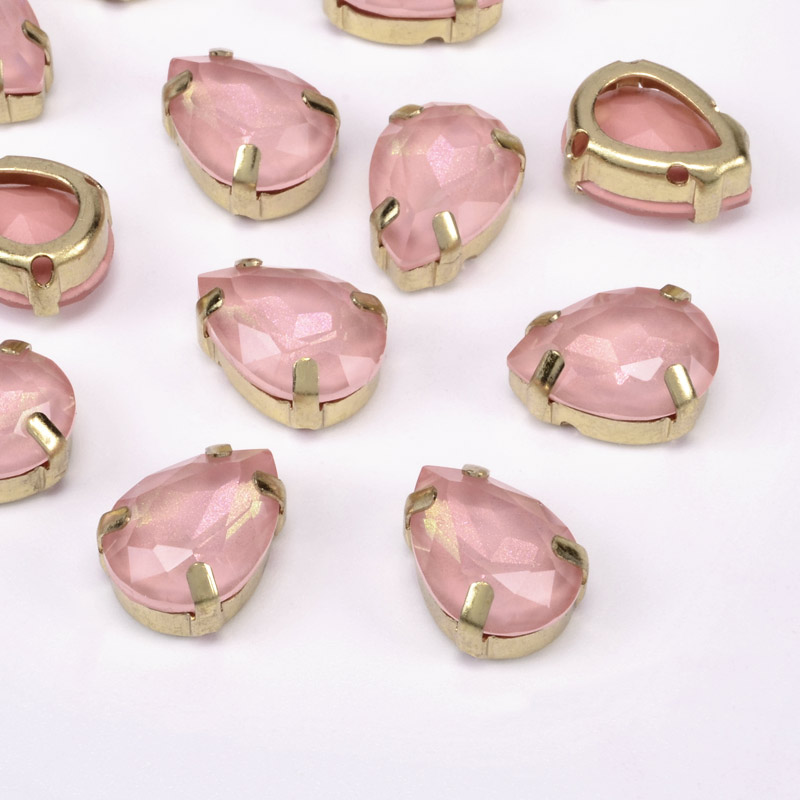 Шатон капля 14х10 мм, Золото, Персиковый (KAB-052948) / 1 шт