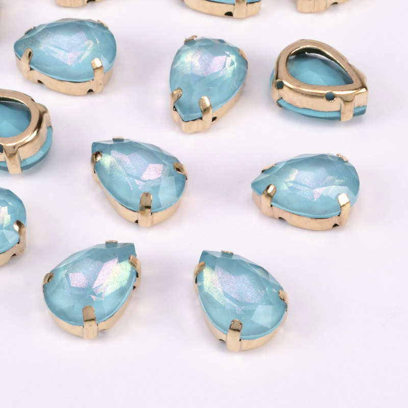 Шатон капля 14х10 мм, Золото, Голубой (KAB-052950) / 1 шт