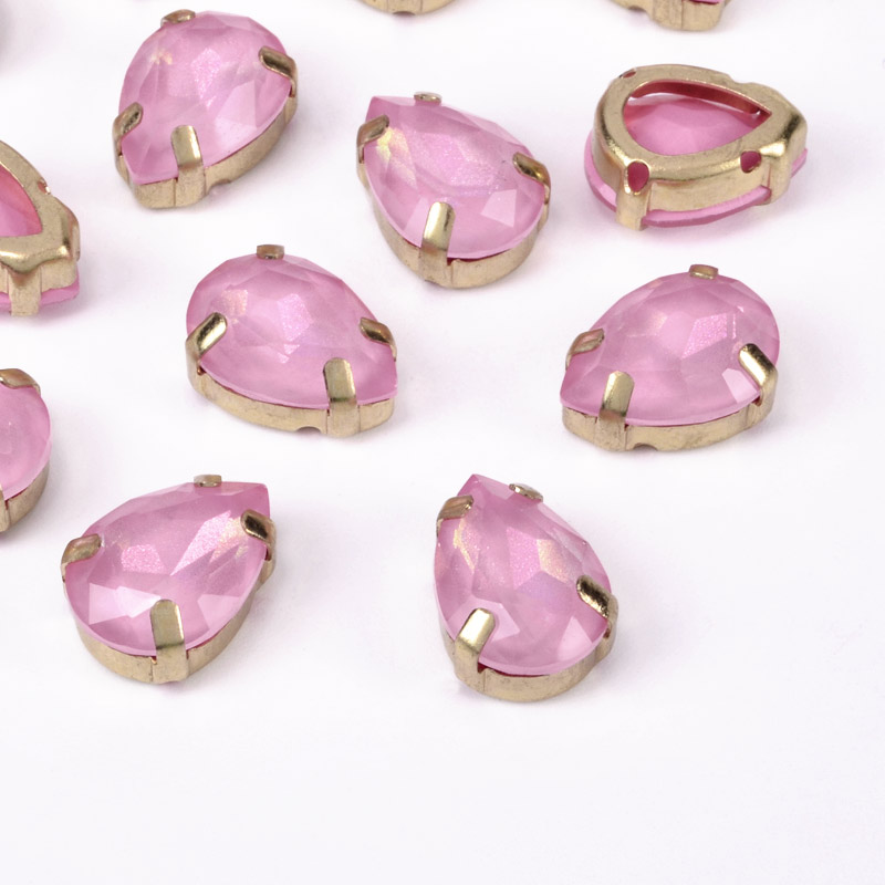 Шатон капля 14х10 мм, Золото, Розовый (KAB-052953) / 1 шт