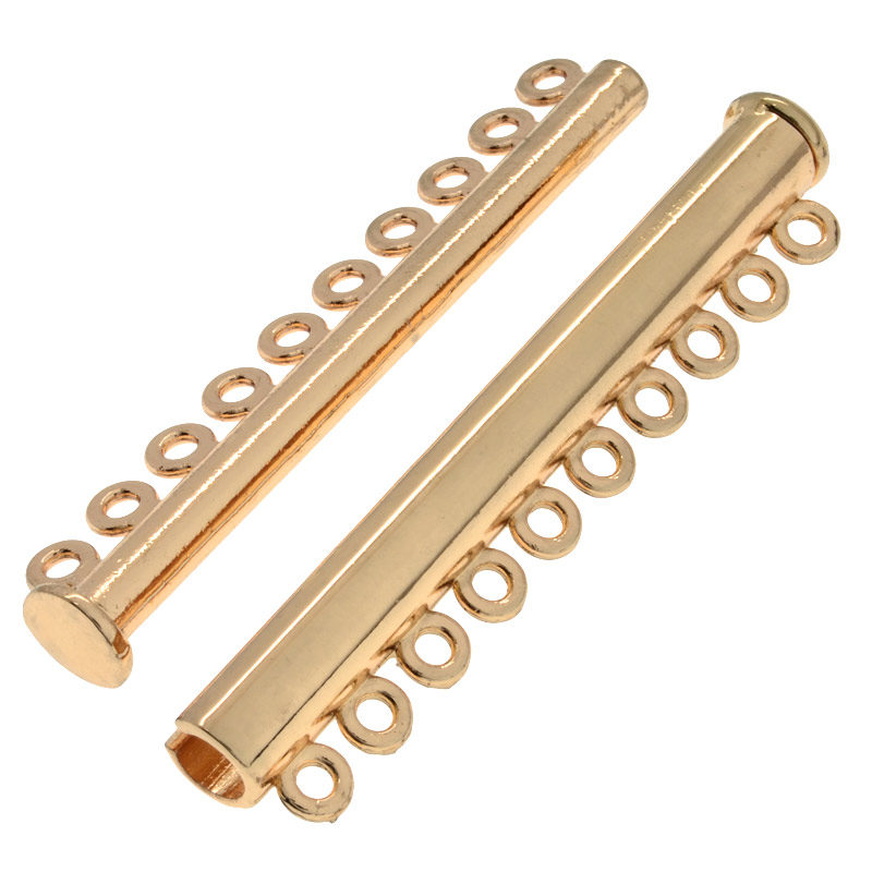 Магнитный замок-слайдер на 10 нитей, Светлое золото, 56х13х7 мм (ZAM-053086) / 1 шт