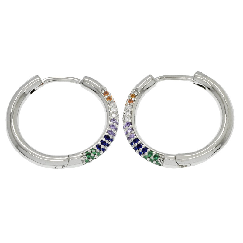 Серьги-кольца Huggie Покрытие Платина со страз. куб. цирконий, 20,5х20х2,5 мм (OSN-053095) / 1 уп (2 шт)