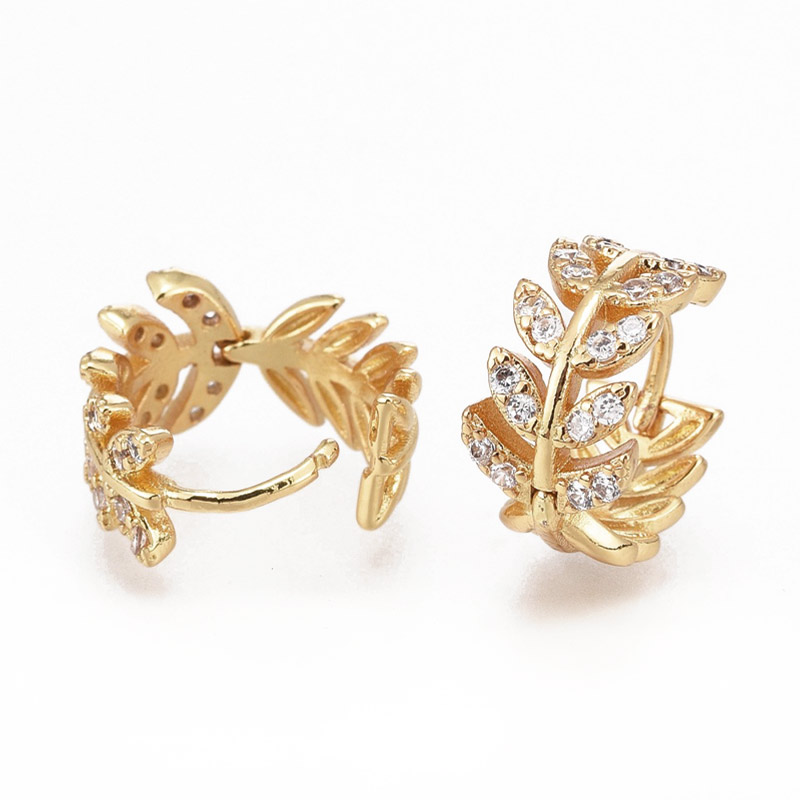 Серьги-кольца Huggie, Латунь с покрытием 18 kt, Стразы куб. цирконий, 13х12,5х8 мм (OSN-053097) / 1 уп (2 шт)