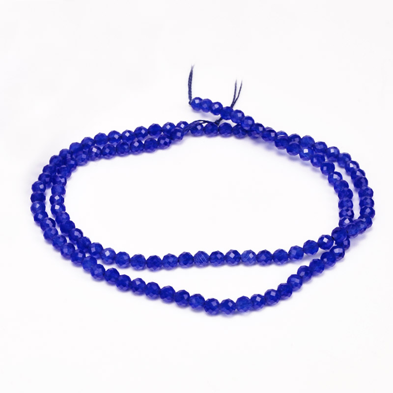 Бусины Кошачий глаз, Синт. камень, 3 мм, Синие, Круглые граненые (BUS-054287) / 1 низка