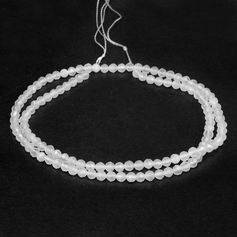 Бусины Кошачий глаз, Синт. камень, 3 мм, Белые, Круглые граненые (BUS-054297) / 1 низка