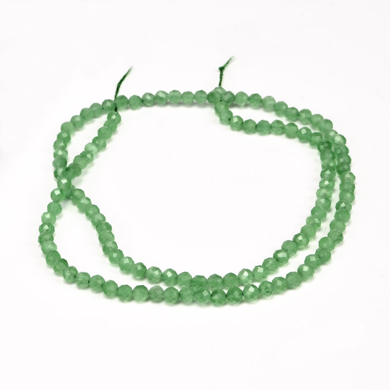 Бусины Кошачий глаз, Синт. камень, 3 мм, Зеленые, Круглые граненые (BUS-054299) / 1 низка