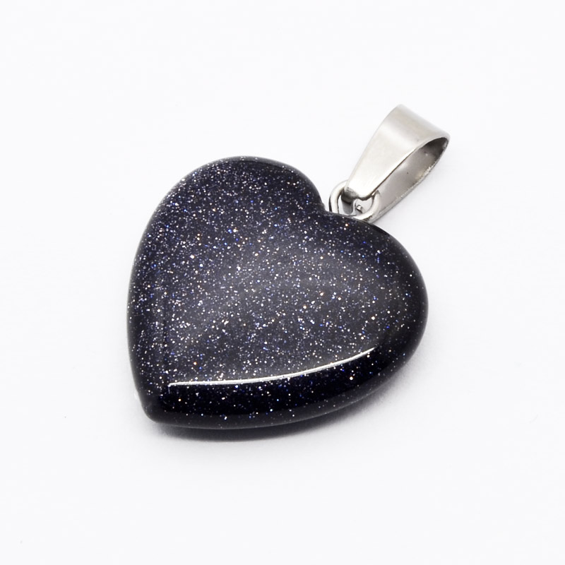 Подвеска Сердце, Синт. камень Авантюрин Золотой песок синий, 20х20 мм (POD-054344) / 1 шт