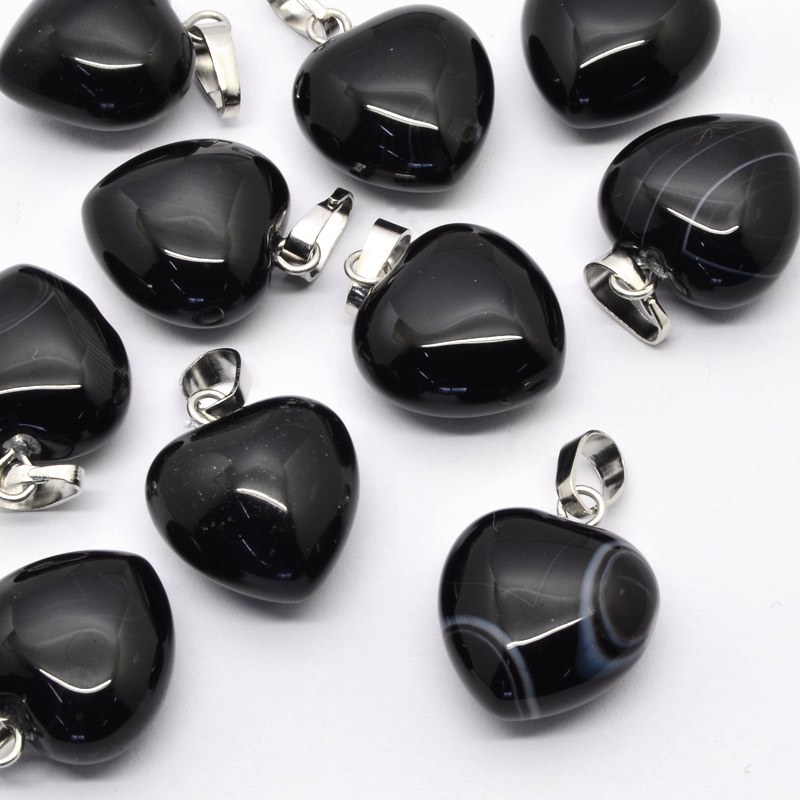 Подвеска Сердце, Натур. камень Агат черный, 18х15х10 мм (POD-054412) / 1 шт