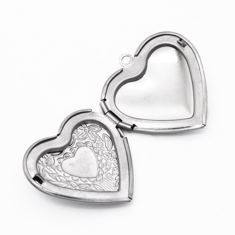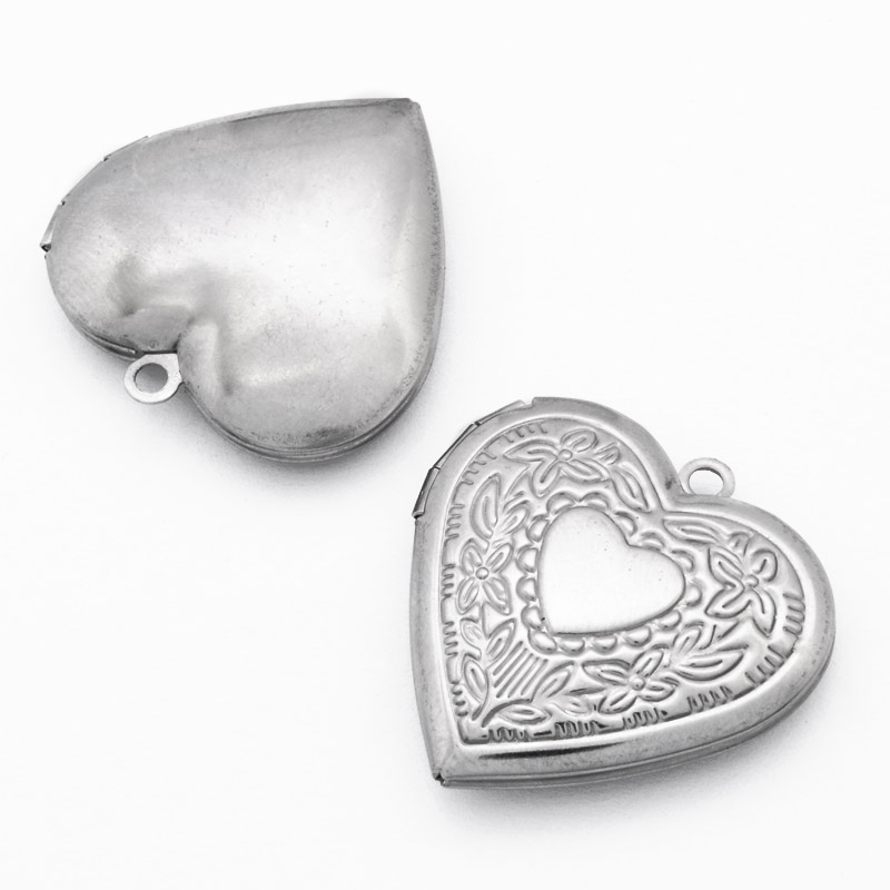 Медальон Сердце c узором из нержавеющей стали, 29х28,5х7 мм, Темное серебро (STL-054449) / 1 шт