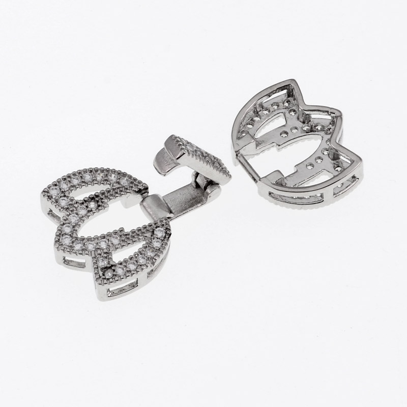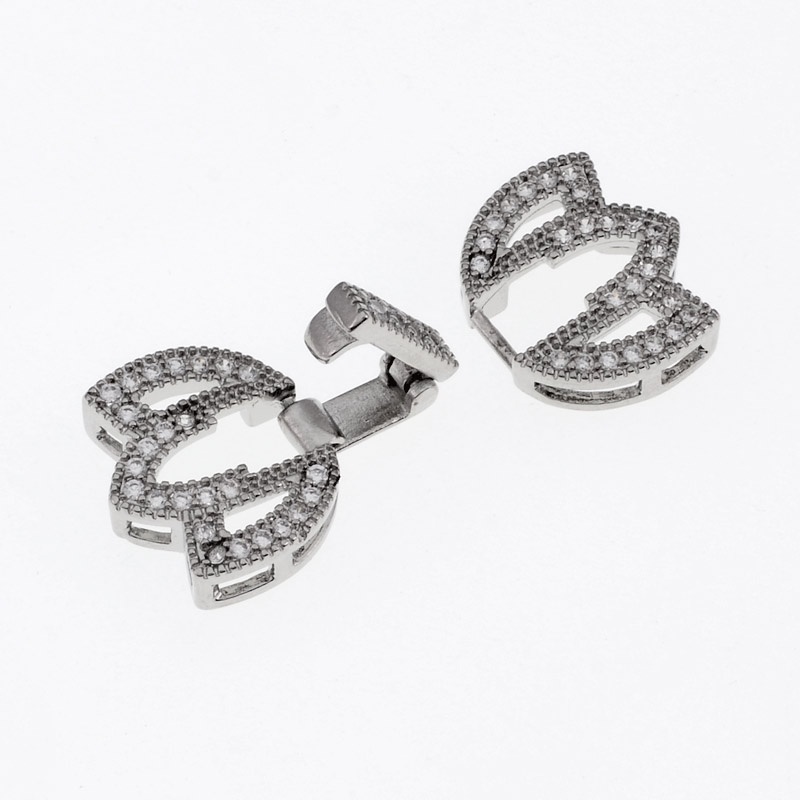 Застёжка, 25х13 мм, Латунь с покрытием Родий, Куб. цирконий (ZAM-055444) / 1 шт