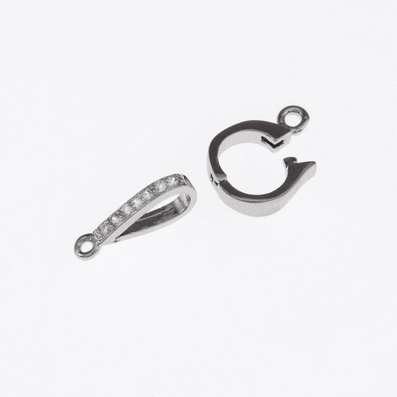 Застёжка, 23х8 мм, Латунь с покрытием Родий, Куб. цирконий (ZAM-055446) / 1 шт
