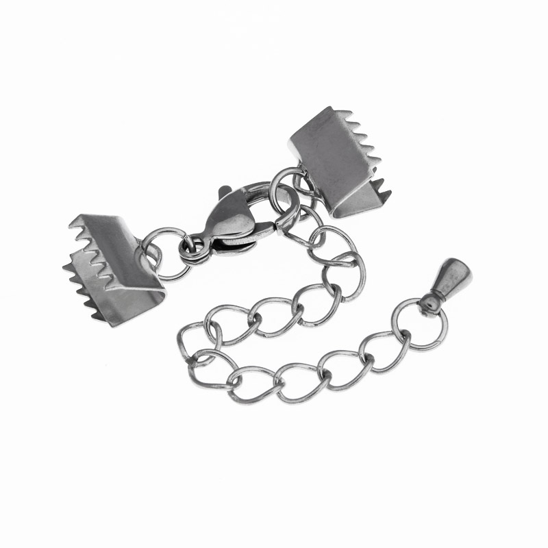 Замок-карабин из нерж. ст. с зажимами 8,5х7 мм, Темное серебро (STL-055758) / 1 шт