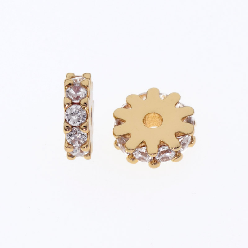 Бусина-разделитель, 6 мм, Латунь с покрытием 14 kt, Стразы куб. цирконий (BUS-055909) / 1 шт