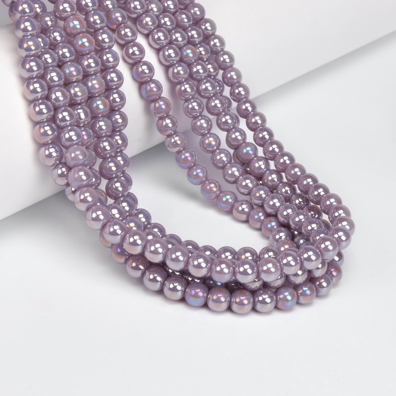Бусины стеклянные, 6 мм, Круглые, Сиреневые АВ (BUS-057271) / 1 низка