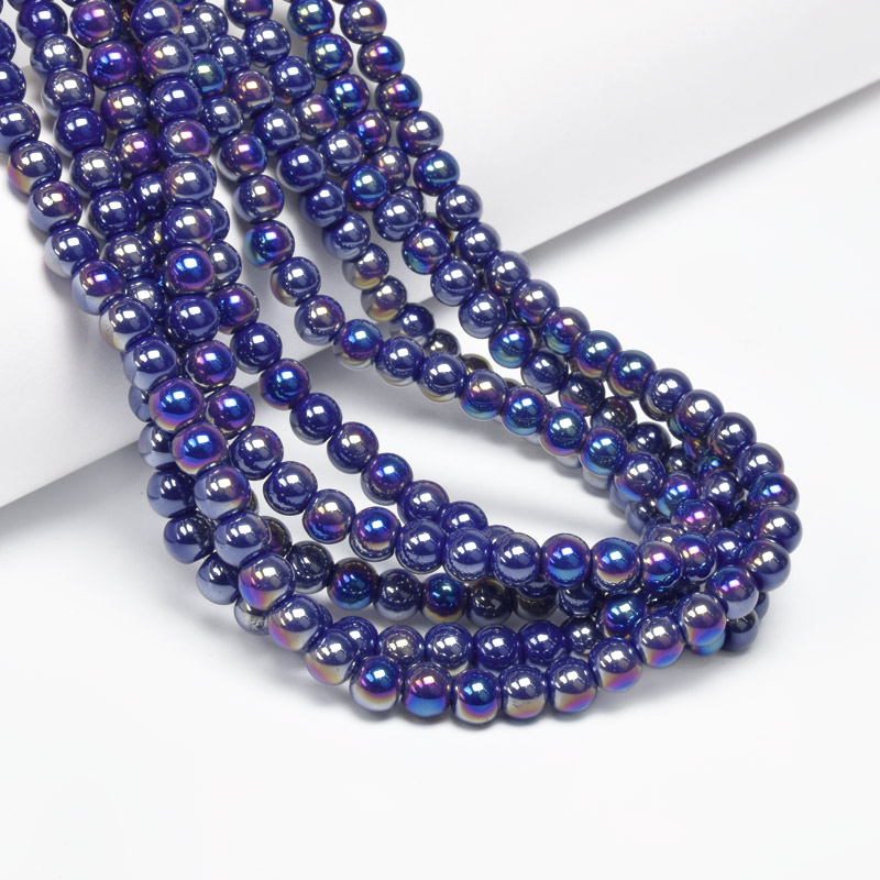 Бусины стеклянные, 6 мм, Круглые, Синие АВ (BUS-057274) / 1 низка