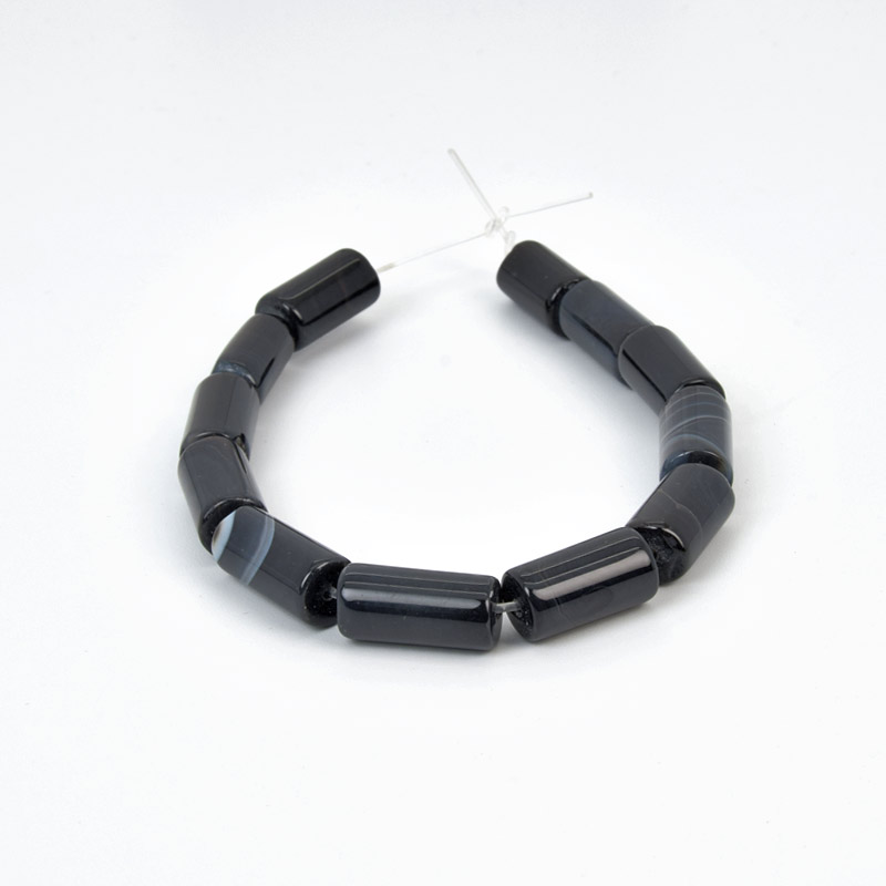 Бусины Агат черный, Натур. камень, 14-17 мм, Боченок, 19 см (BUS-058149) / 1 низка