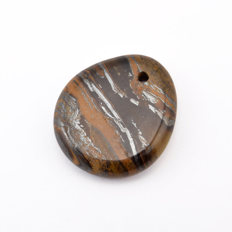 Подвеска Капля плоская, Натур. камень Тигровый глаз, 28х25 мм (POD-058653) /