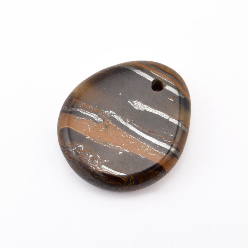 Подвеска Капля плоская, Натур. камень Тигровый глаз, 28х25 мм (POD-058653) /
