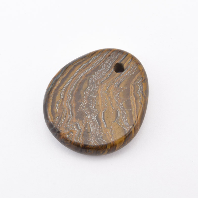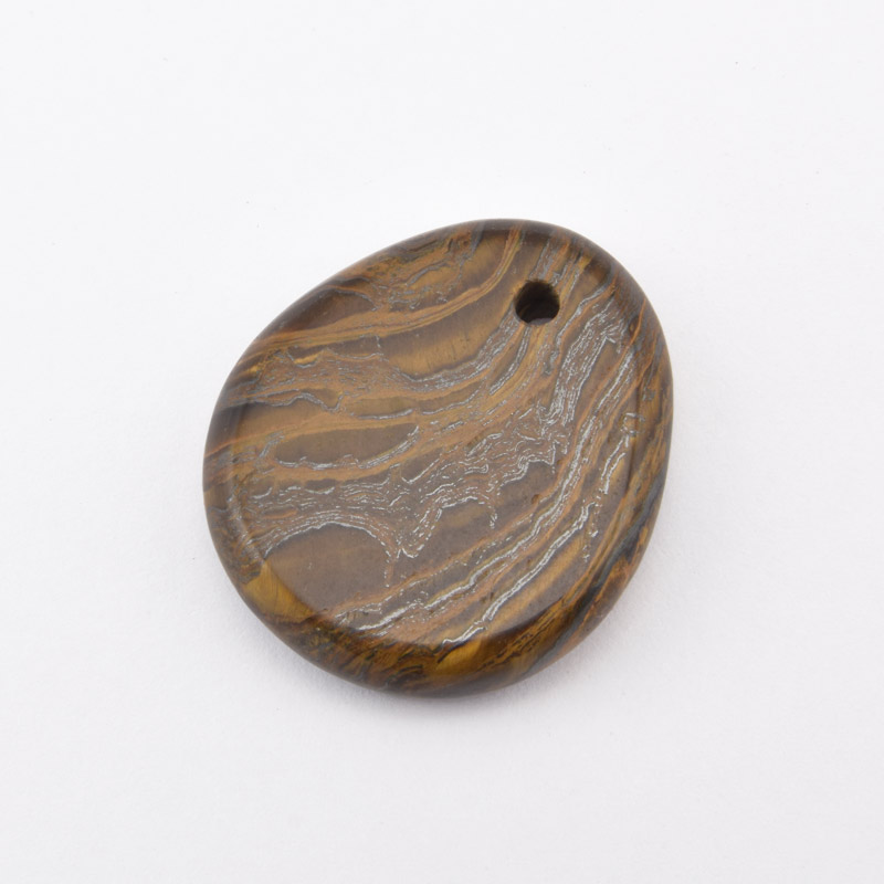 Подвеска Капля плоская, Натур. камень Тигровый глаз, 28х25 мм (POD-058657) /