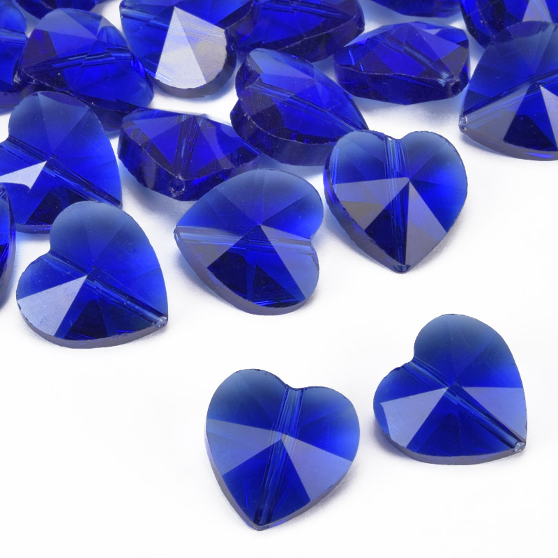 Бусина стеклянная, Сердце граненое, 14х14х9 мм, Синяя (BUS-059989) / 1 шт
